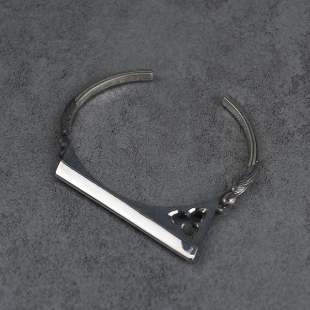 【予約商品】 こちらの商品は、オーダーをいただいてからの生産のため、お手元にお届けするまで3週間程度お時間をいただいております。ご確認のうえでご購入いただきますようお願いいたします。 斬首刑の執行装置であるギロチンをモチーフにした斬新なアプローチのバングル。 Material : Silver925 HD / 12*6mm Msize / Inside : 56*50mm Slit : 25mm Lsize / Inside : 62*52mm Slit : 30mm ※希望サイズを備考欄にご記入ください。 ※表記外のサイズ、カスタマイズはお問い合わせください。