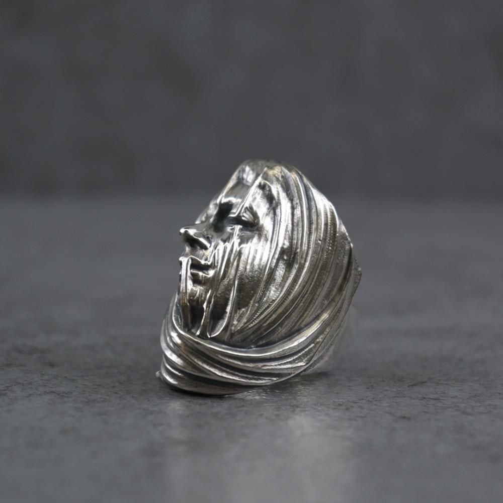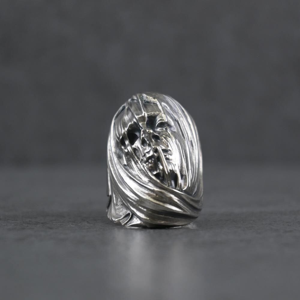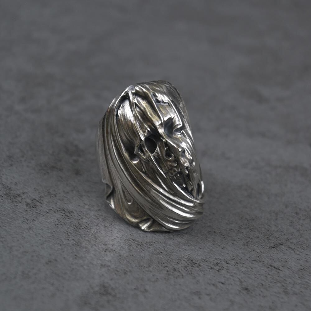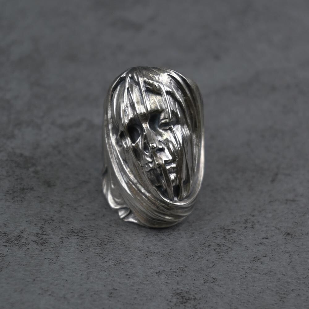 ヴェールを纏った女性、スカルがモチーフのリング