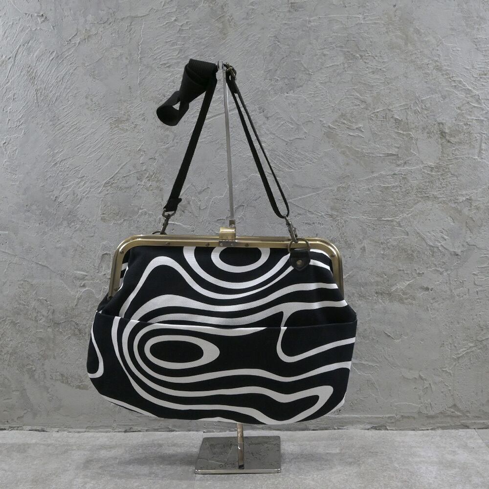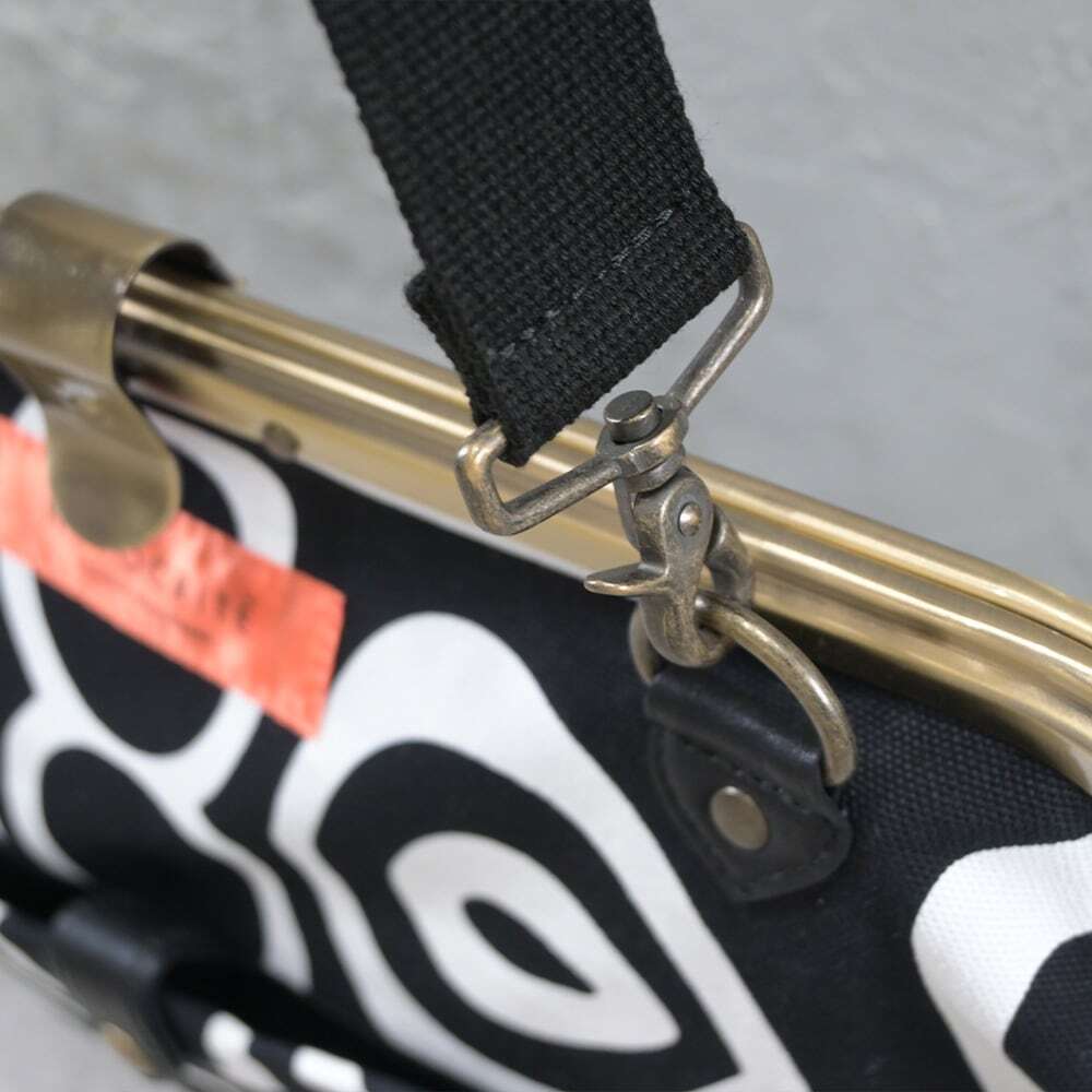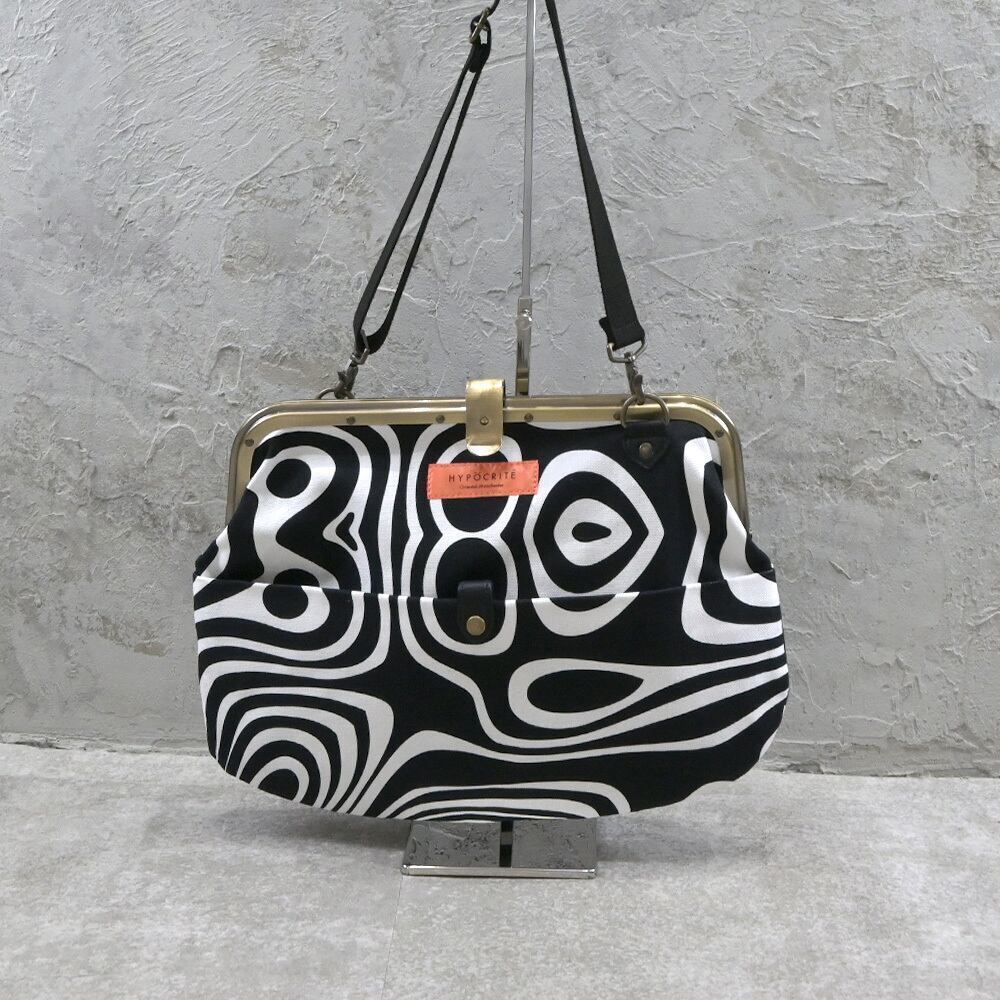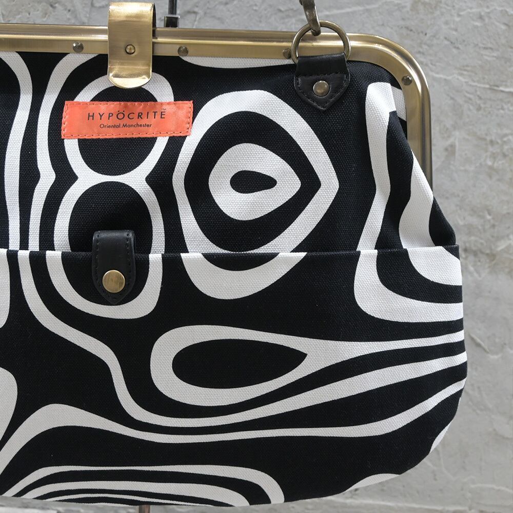 定番タイプのがま口レザーショルダーバッグからHYPOCRITE を象徴する【DEAD OF PSYCHEDELICKER】柄のテキスタイルを全面使用。ヘヴィーツイルでタフな作りの【がま口タイプ】のカバンはレディースライクなデザインをメンズでも使えるようなディテールワークで仕上げています。質感と機能性にフォーカスを置き外側に両面ポケット、中にも両面しきりポケットやジップ付きポケットがあり収納性抜群の作りで仕上げています。インパクトを放つデザインながらデイリーユースな素材感があるおすすめの品番です。