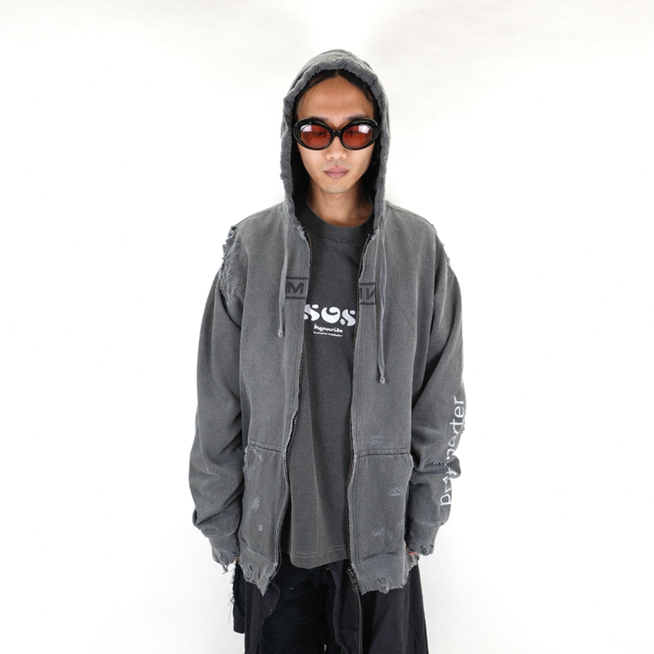 MINUS/ Bootleg Zip Up Hoodie With Damaged(SIN)