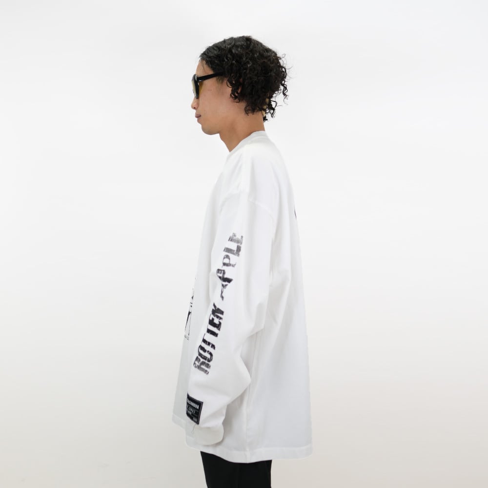 -ORIGINAL TAG -SILK SCREEN [ COLOR ] : ホワイト[ SIZE ] : 【 SIZE① / 肩幅:60cm / 身幅:62cm / 袖丈:58cm /着丈:74cm 】【 SIZE② / 肩幅:62cm / 身幅:65cm / 袖幅:60cm / 着丈:77cm 】【 MATERIA 】 : COTTON 100% 【 MADE IN JAPAN 】1点1点加工しておりますので、同じものは2つとなく、個体差がございます。